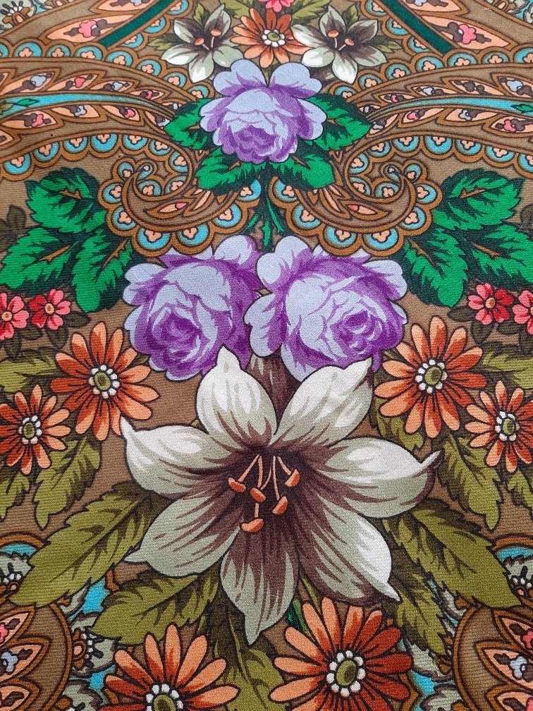 Оксана, oksi ! Очень красивый "Царский дворик"! Нравится, что Кутузов не боится пышной декоративности, богатства цветочного рисунка. Но я к нему всё ещё присматриваюсь, пока не купила ни одного его платочка. Красивые, но.. что-то останавливает.