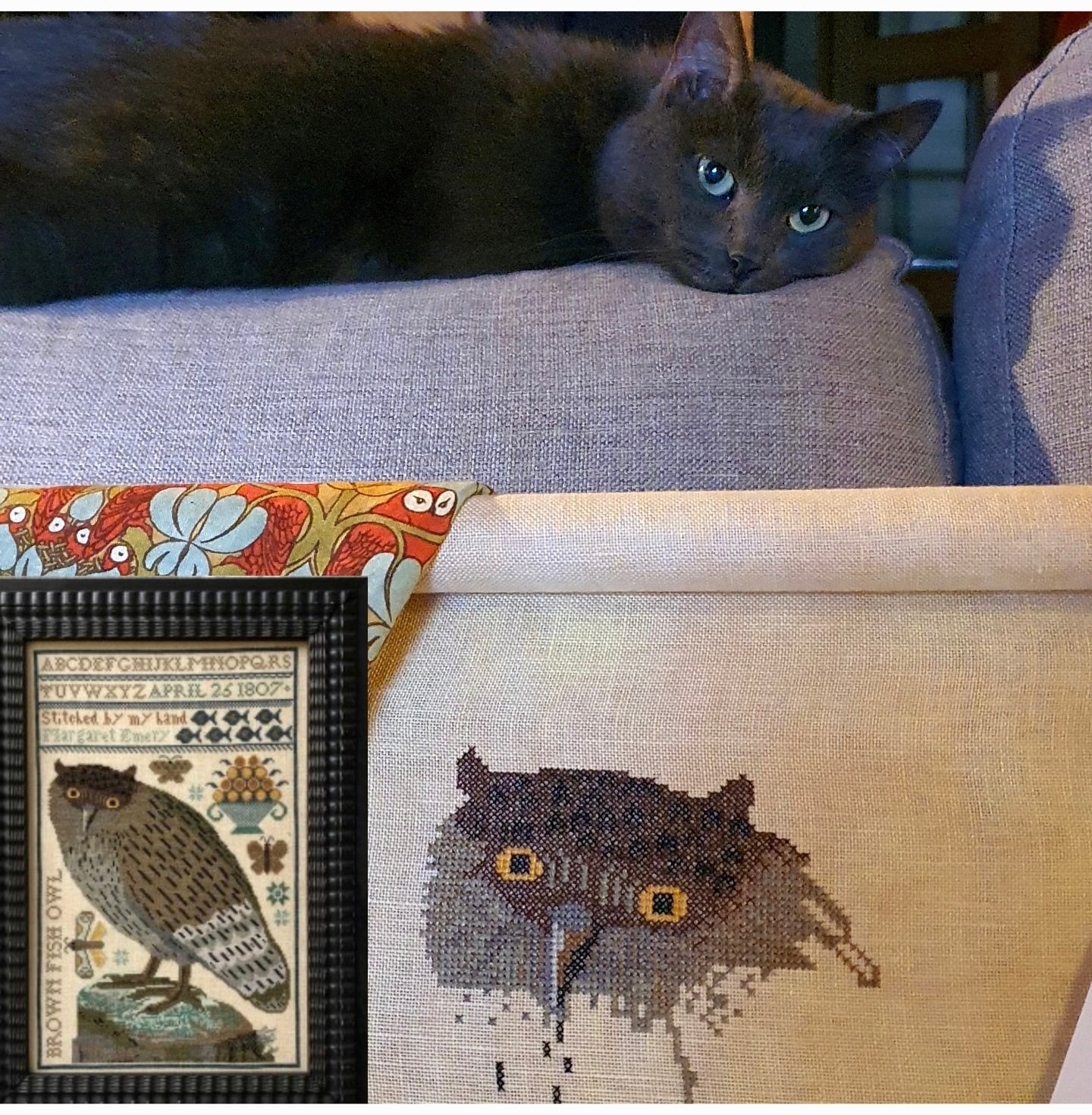 Котик явно считает, что вышивают портрет не того...