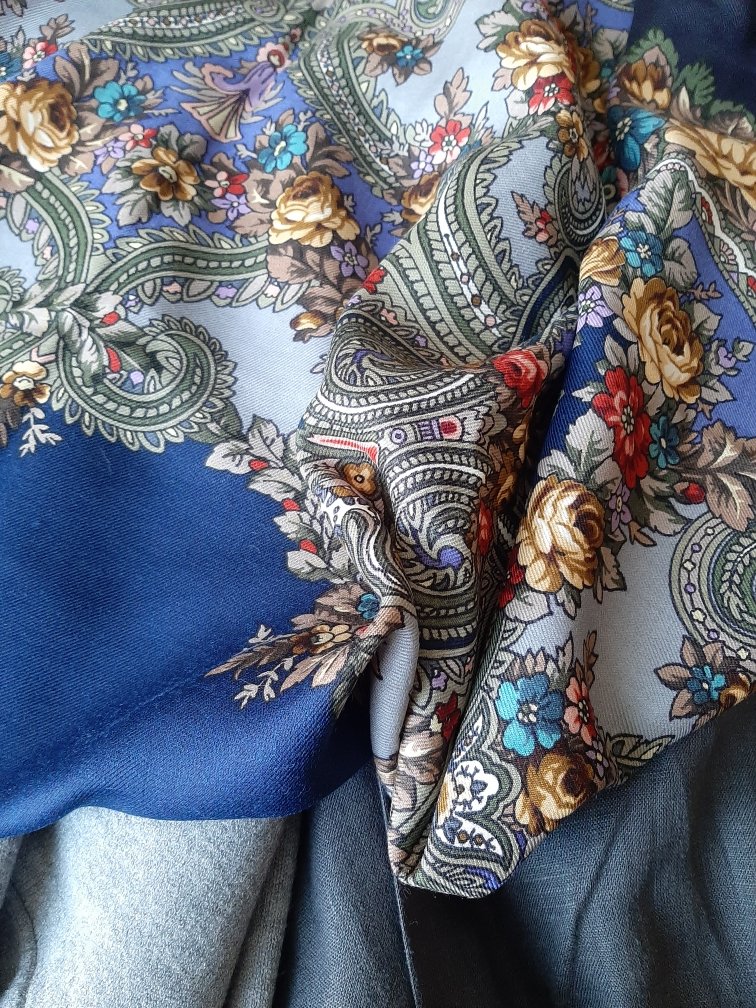 Шаль Клары Зиновьевой "Небесный" в 14 колорите. Цветопередача точная. Общая гамма сдержанная, слегка припыленная.