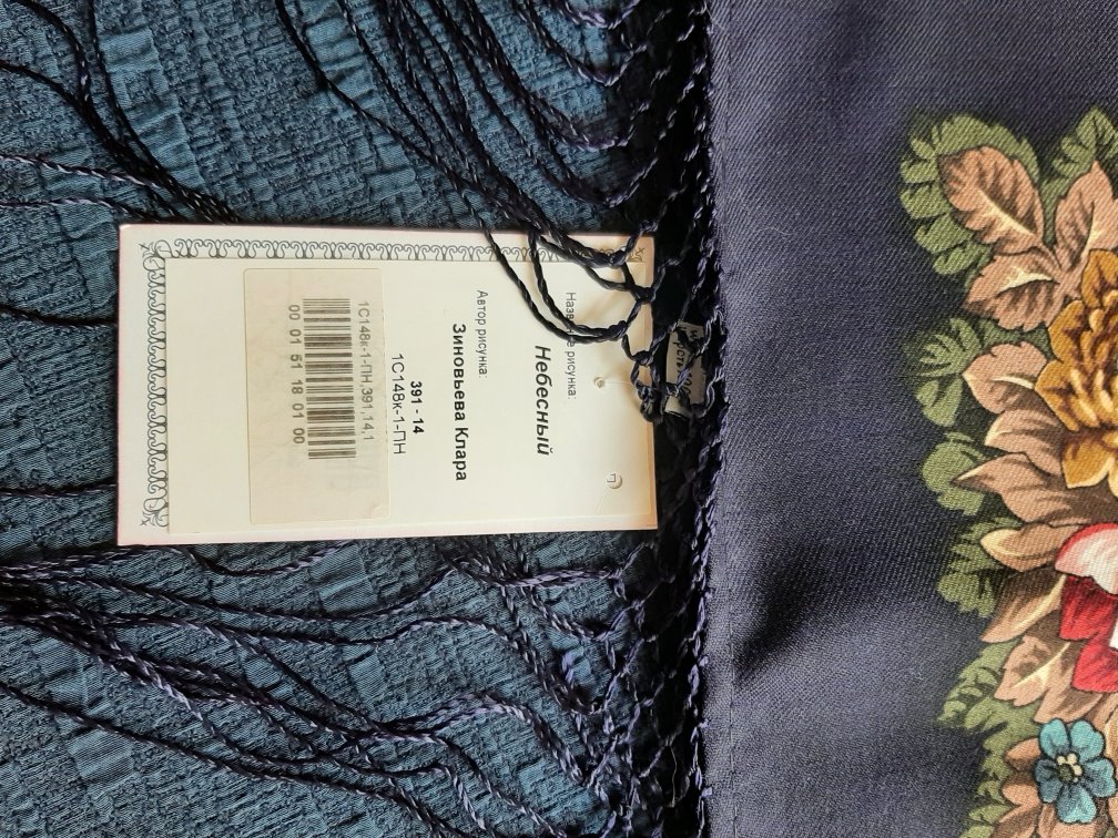 Шаль Клары Зиновьевой "Небесный" в 14 колорите. Цветопередача точная. Общая гамма сдержанная, слегка припыленная.
