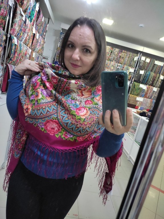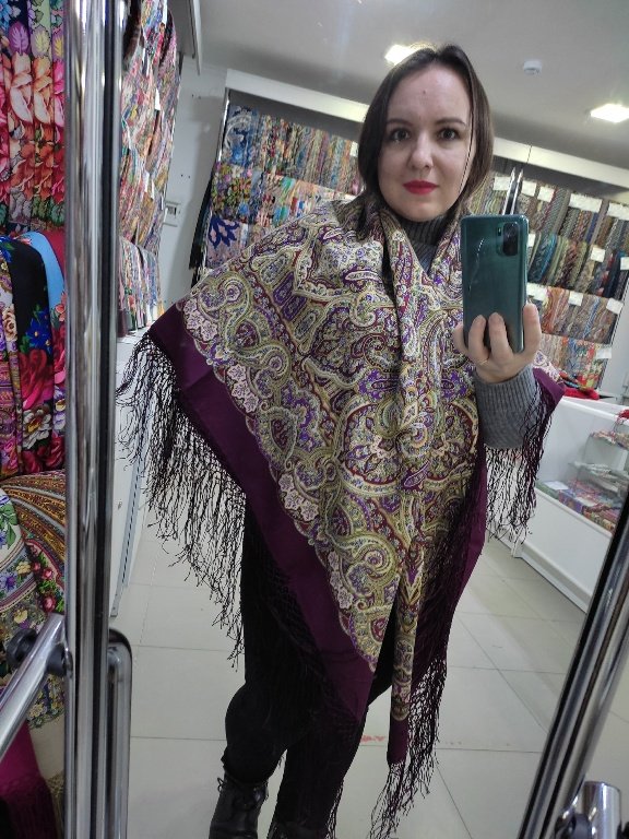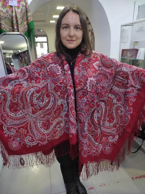 На фото стандарт, на котором пятнами присутствуют самые разные оттенки красного. Вот те куски шали, которые самые темные, мне очень нравятся и идут. Заказала на ВБ 1 сорт - пришел равномерно светленький, не впечатлил на мне.