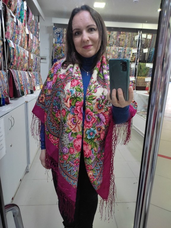 На фото стандарт, на котором пятнами присутствуют самые разные оттенки красного. Вот те куски шали, которые самые темные, мне очень нравятся и идут. Заказала на ВБ 1 сорт - пришел равномерно светленький, не впечатлил на мне.