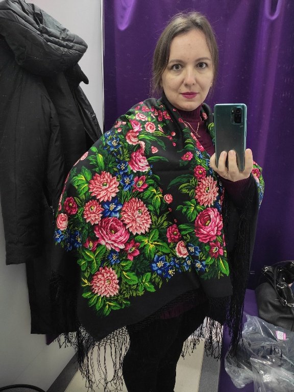 На фото стандарт, на котором пятнами присутствуют самые разные оттенки красного. Вот те куски шали, которые самые темные, мне очень нравятся и идут. Заказала на ВБ 1 сорт - пришел равномерно светленький, не впечатлил на мне.