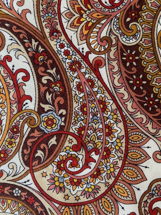 Контрастный, нежный и деликатный рисунок! Опасалась неонового, персикового-желтого. Нет --есть похожий цвет, но он больше "тыквенный сок". Очень прекрасный--красный георгин. Много прожилок с осторожным темно-розовым. Общий фон , как обычно молочно-сливочный.