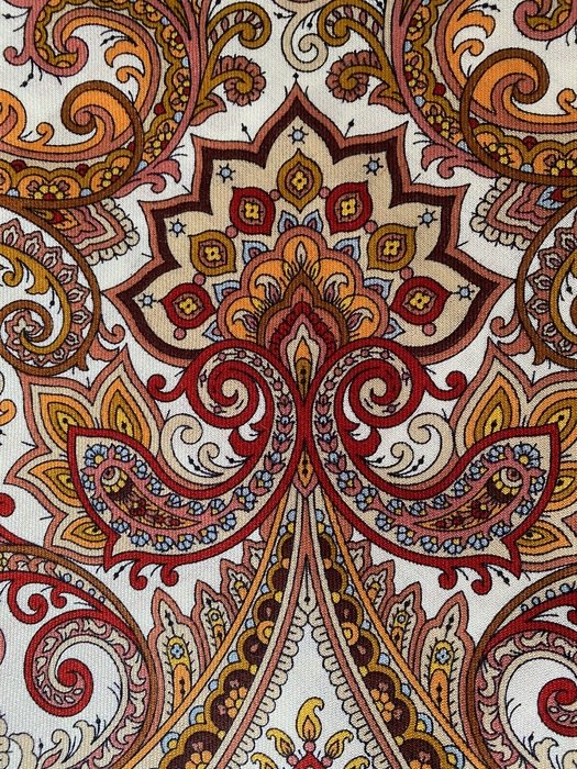 Контрастный, нежный и деликатный рисунок! Опасалась неонового, персикового-желтого. Нет --есть похожий цвет, но он больше "тыквенный сок". Очень прекрасный--красный георгин. Много прожилок с осторожным темно-розовым. Общий фон , как обычно молочно-сливочный.