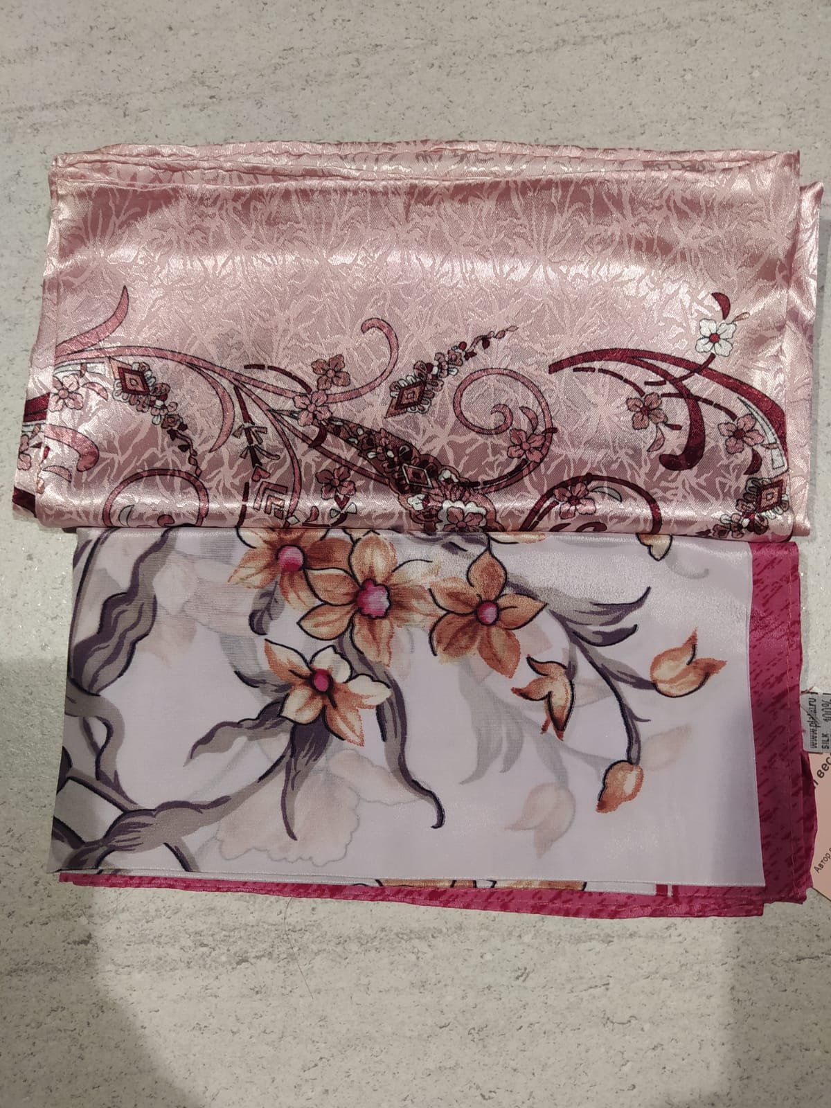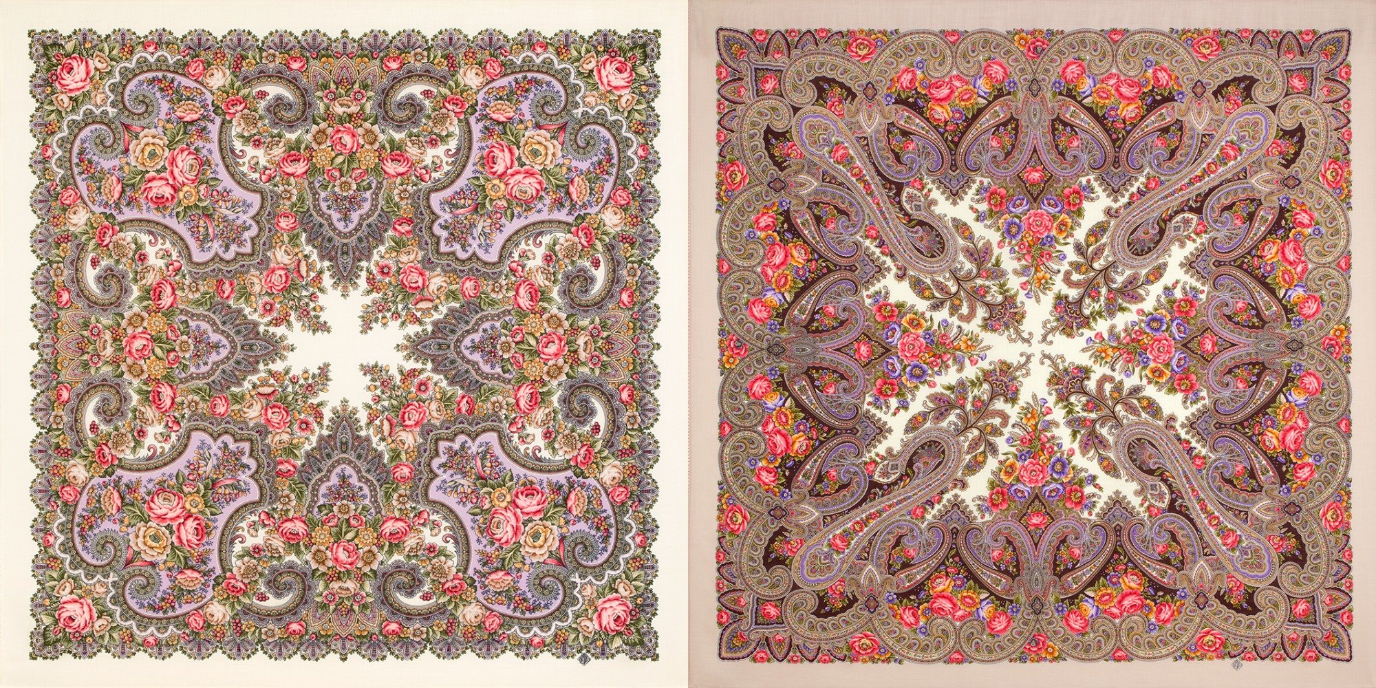 На сайте фон платка розовый, возможно такими были первые партии. В жизни очень интересный хамелеонистый жемчужный оттенок с розовато-сиреневым отливом