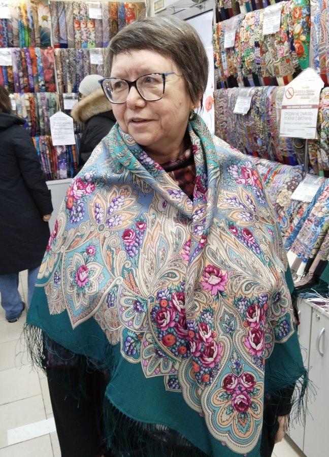 Прошу прощения, но и шаль, и платок малость помяты. Последние экземпляры, сняли с витрины, поэтому немного такие.