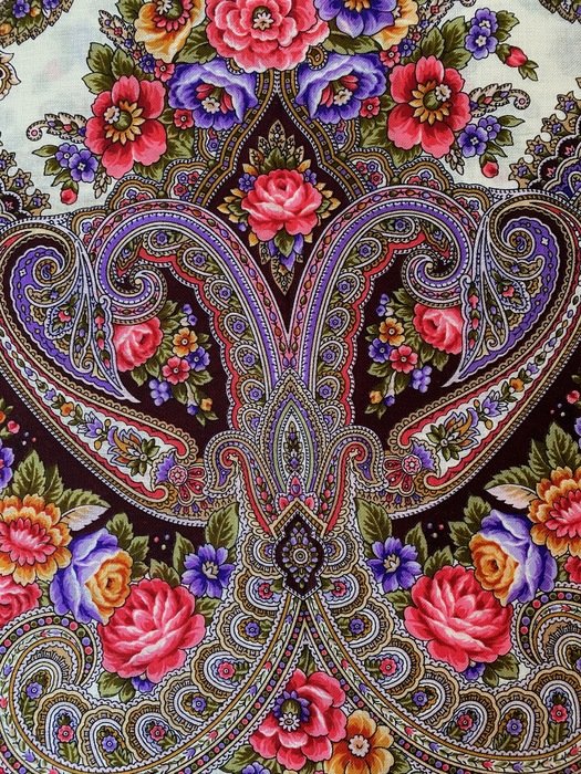 Говоря о середине, к сравнению, 5-ый колорит, богаче глубиной, контрастом ( на черном фоне кажется "колодец", глубина, цветы уходят вниз-- это привлекательно). И все равно , по первому впечатлению, 5-ый совсем не понравился, особенно сочетанием светло-коричневого с синюшно-сиреневыми цветами, да все это на черной середине, да, с красной каймой...