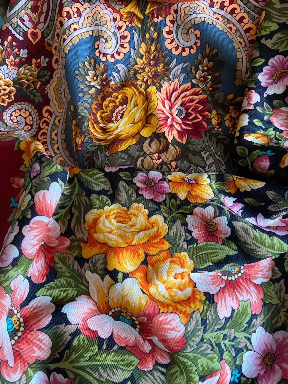 Сколько их у Вас, оказывается!))) Очень наглядно для меня сравнение красного "Огненного танца" с "Губернаторским" (из этих трех шалей у меня есть только он). Да, Танец - это жар костра, сам огонь. Но... что-то после этих сравнений мне так понравился красный "Таинственный вечер"!