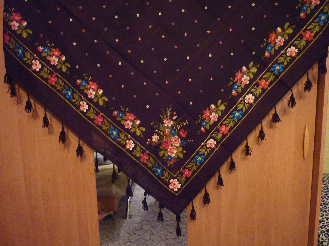 Вот моя идея с бахромой. Этот платок у меня "для работы", так что можно было с ним и поэкспериментировать.