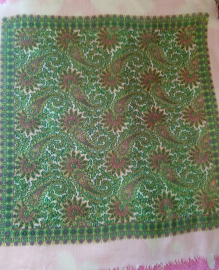 Показываю мой платочек ппх_23, такого колорита пока нет в коллекции. Надо сказать, что ранее указывали другой размер, а мой - маленький, 70 на 72 см.