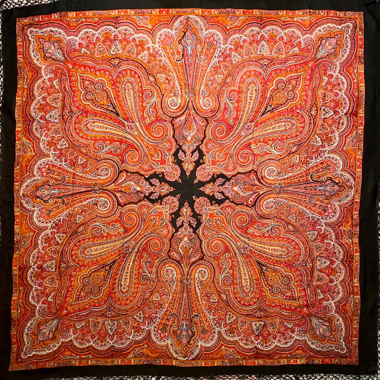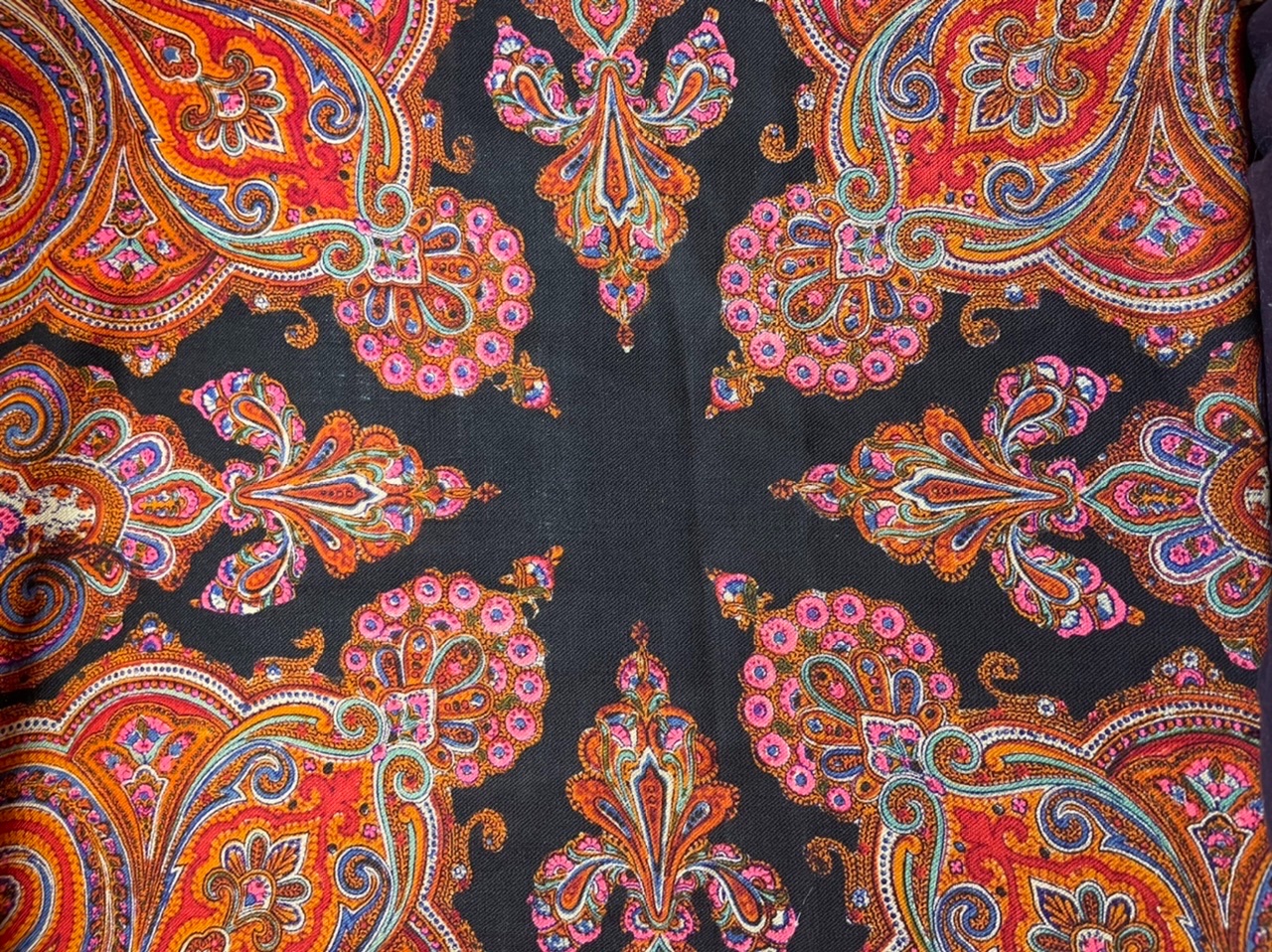 tata64, Татьяна, я не ожидала и от себя такой же реакции:)) восторгаюсь сложными рисунками с цветами и букетами, а когда вчера разложила на столе эту драгоценность, совсем растаяла. Орнаментальные шали абсолютно красивы! И какая точная набойка такого мелкого рисунка! Меня тут поразило неожиданное сочетание рыжего и розового.