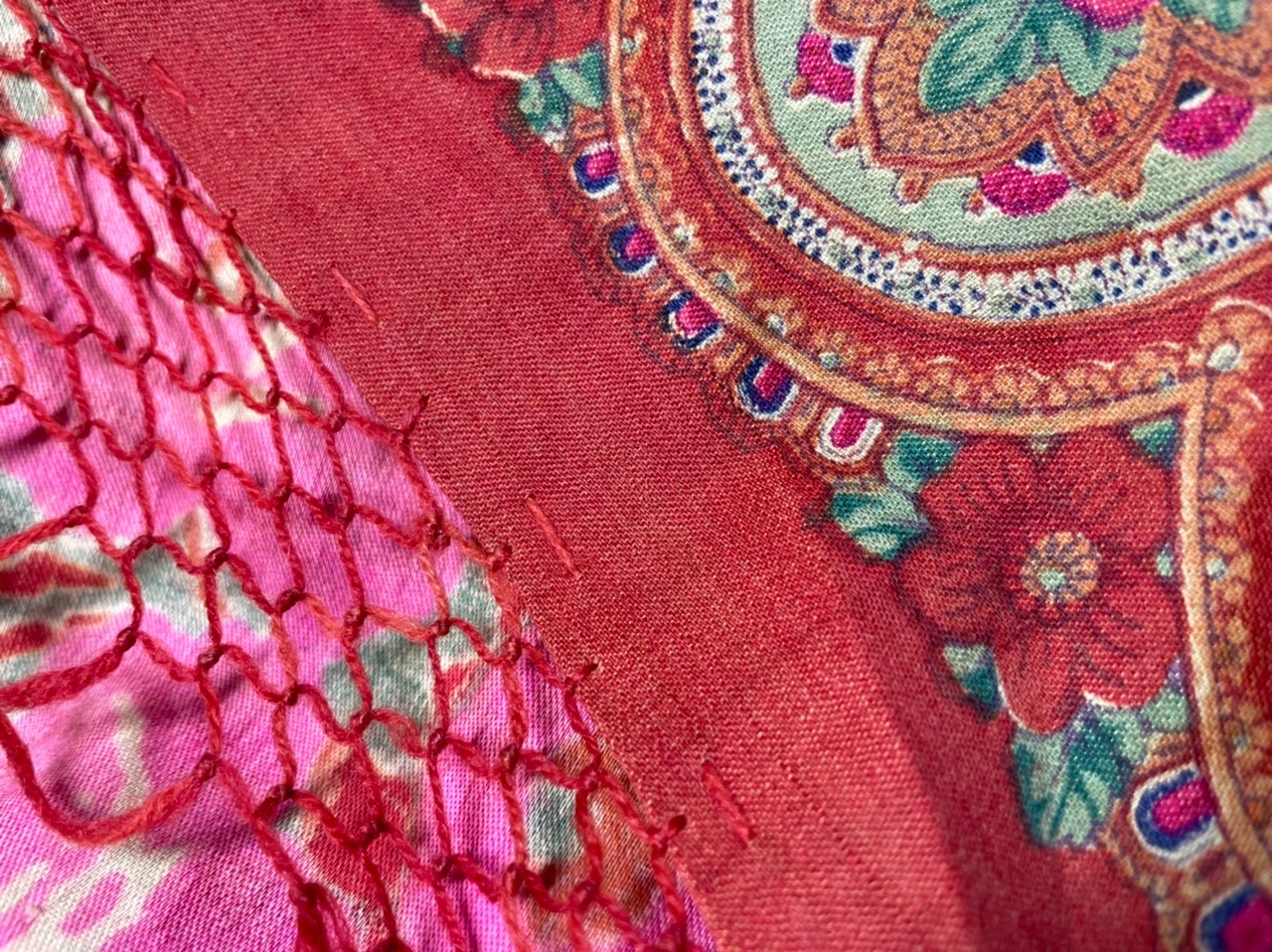 Изнанка аккуратная, подшито стандартным способом для шалей этого периода. Бахрома вся в сохранности