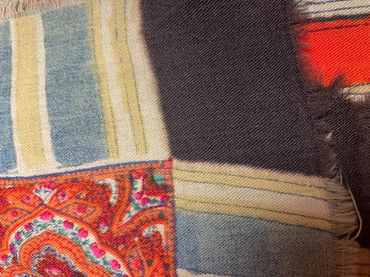 Пока ждала эту шаль, пересмотрела огромное количество материалов по орнаментальным шалям, но не нашла похожую. Стало уже казаться, что я не вижу чего-то явного. А сегодня открыла и поразилась красотой рисунка. Но самое интересное - клеймо. Его сразу и не заметишь, такое оно маленькое. Читается плохо. Рядом цифровой штамп «10» или «101». Диаметр 2 см. Есть внутренняя рамка в клейме и там тоже что-то написано. Таких маленьких клейм не так уж и много.