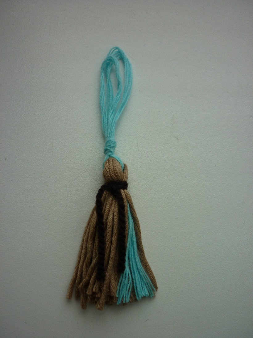 Для наглядности покажу на нитках разного цвета."Кисточка" прикреплена как обычная бахрома.
