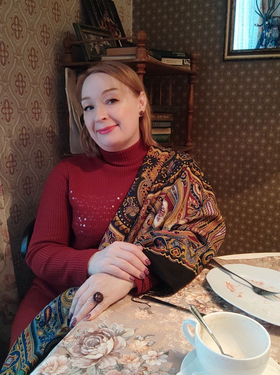 Надежда, каждый день новая шаль, новый образ, неувядающая классика.
