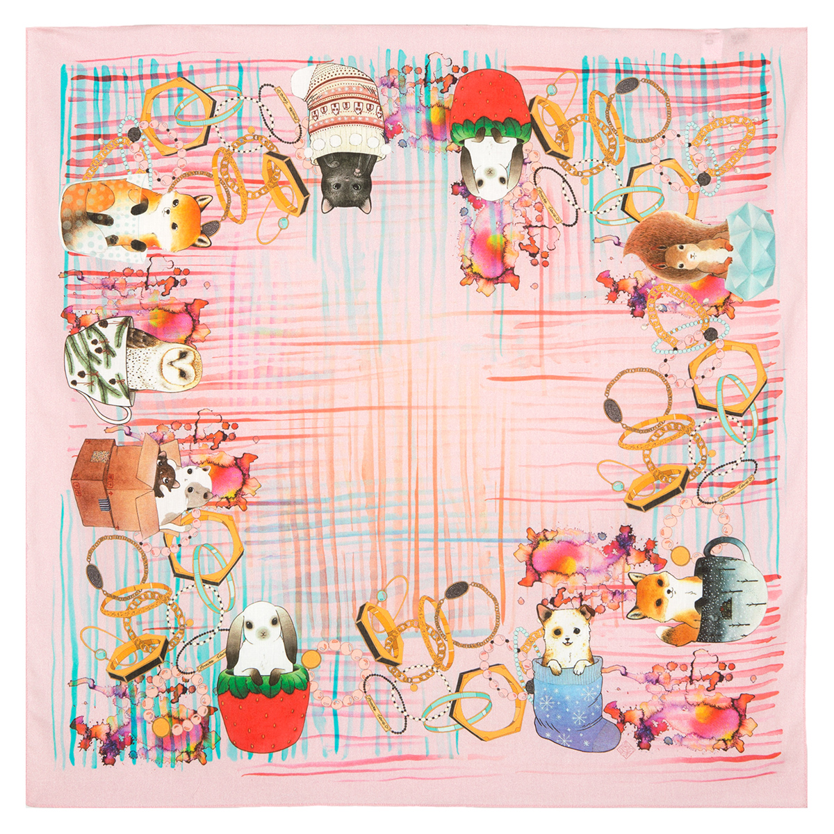 Край оформляется подрубкой. Платки напечатаны прочными к стирке красителями.