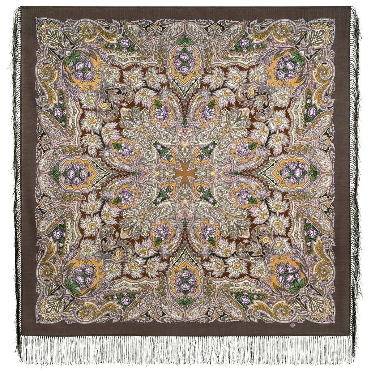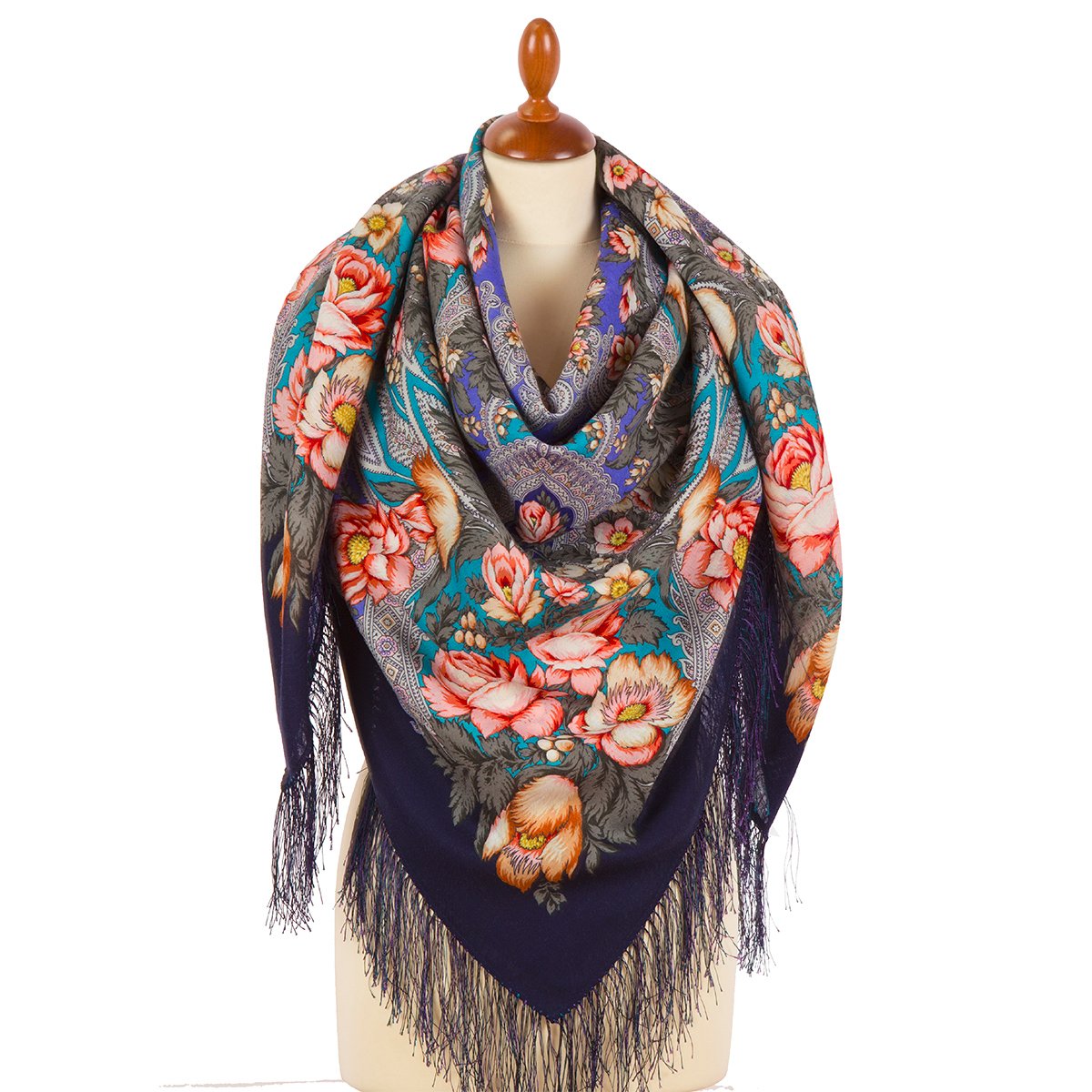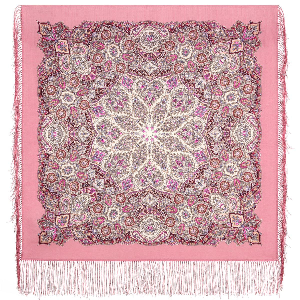 Платок шерстяной с шелковой бахромой, 125×125 см