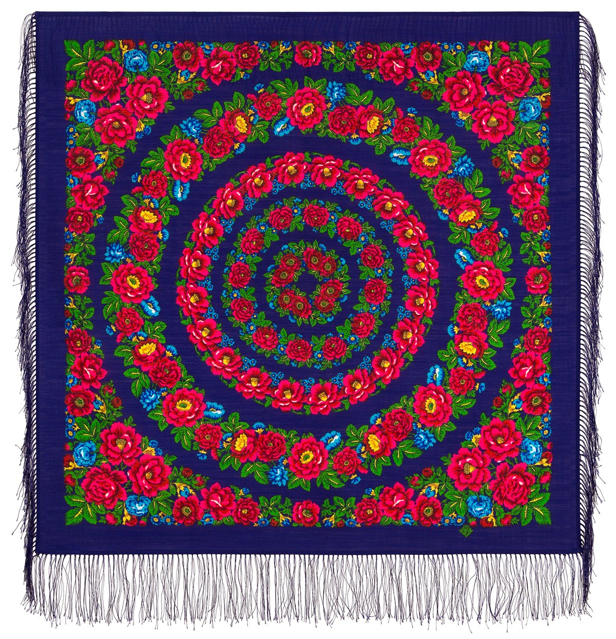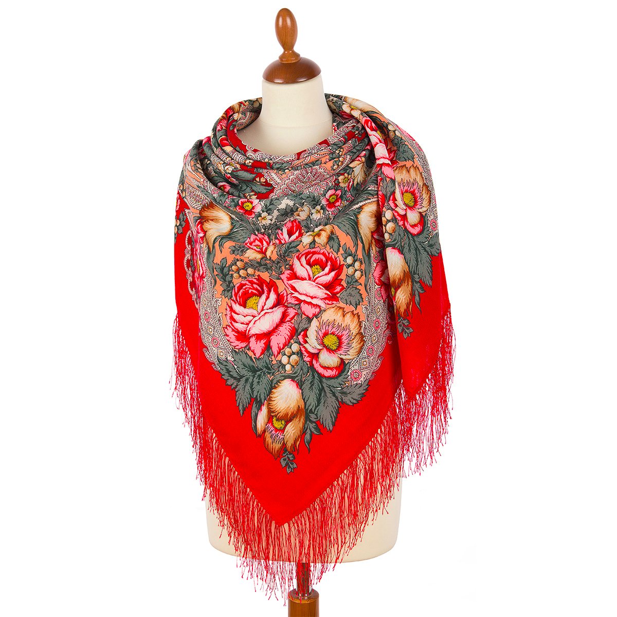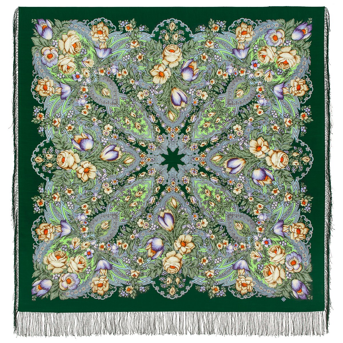 Платок шерстяной с шелковой бахромой, 125×125 см