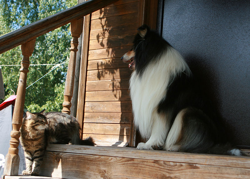 Добро пожаловать! ^% :D Беня еще и защитник женщин и детей! Недавно проявил себя именно так, мы были немало удивлены! :o Он с колли Матвеем очень држен, но когда Матвей стал бегать кругами по полянке, носился, как ураган, а мы от него уворачивались, неожиданно проявил себя Беня, он погнался за колли, угрожающе на него налетел и погнал его домой, колли, как ни странно его послушался. Колли 2 года, коту - 1 год!