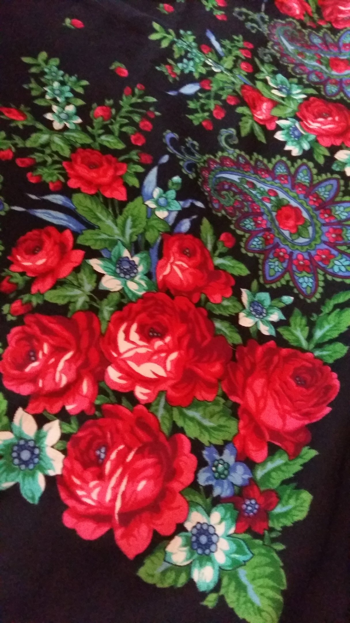 У меня тоже вопрос, кстати. ) Платок большой, но нигде (кажется) в каталоге не фигурирует. Фрагменты прикрепляю, целого нет.