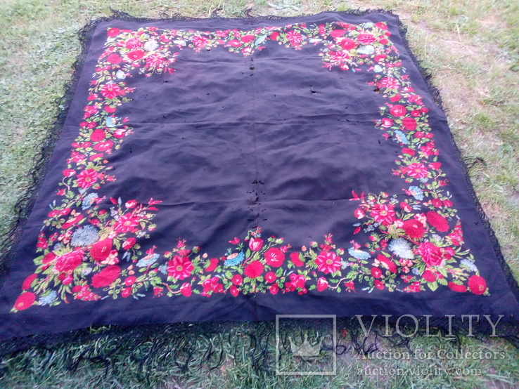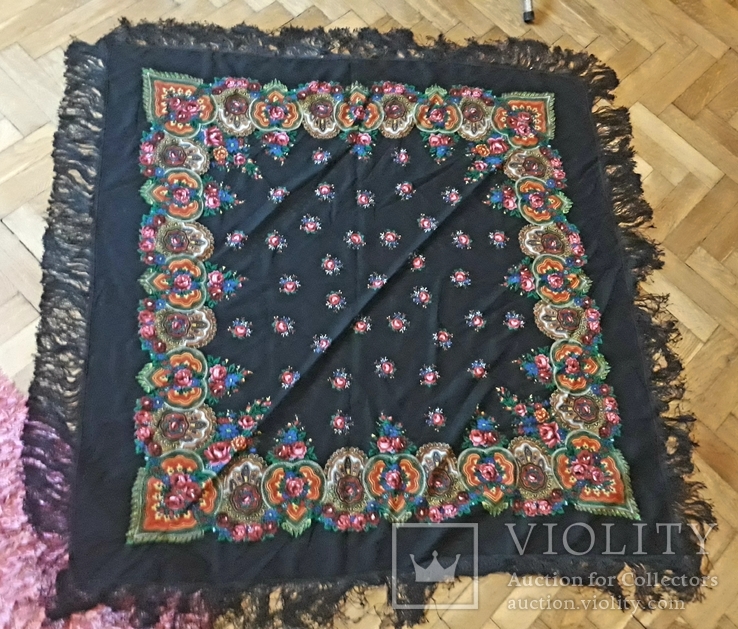 Шаль черная с многоцветным рисунком из Испании (Леон)