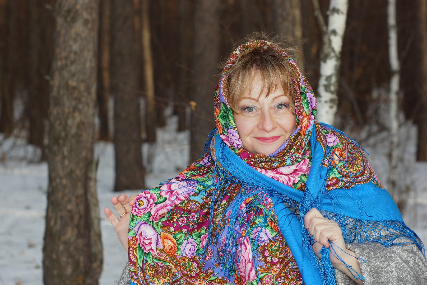 Демонстрируем ношение платков и шалей.