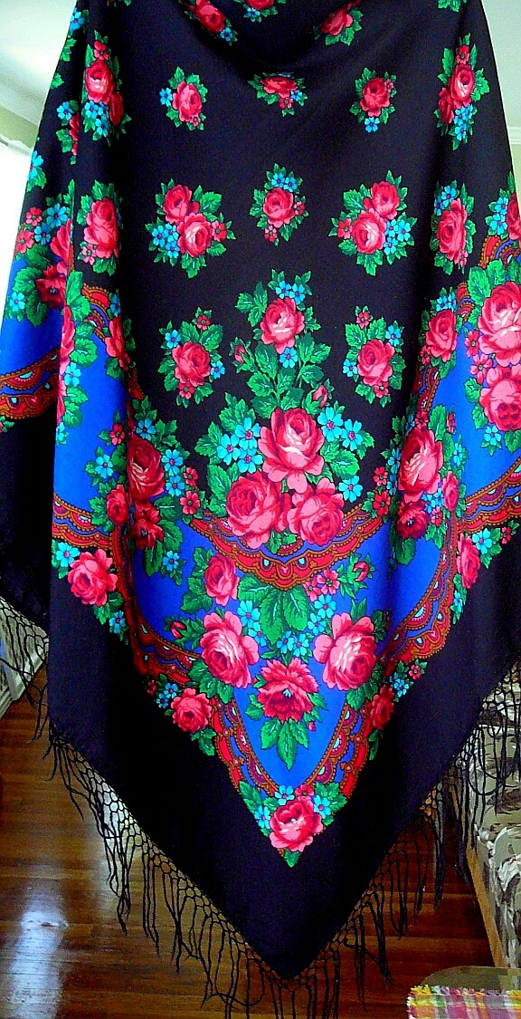 Чардаш - да, очень характерная для ПП шаль 70-80 годов: синие низки, черный фон, традиционная родаминовая роза и изумрудная зелень. В одной из книг есть фото Чардаша (как у Янетты) - там шаль датирована 1980 годом.