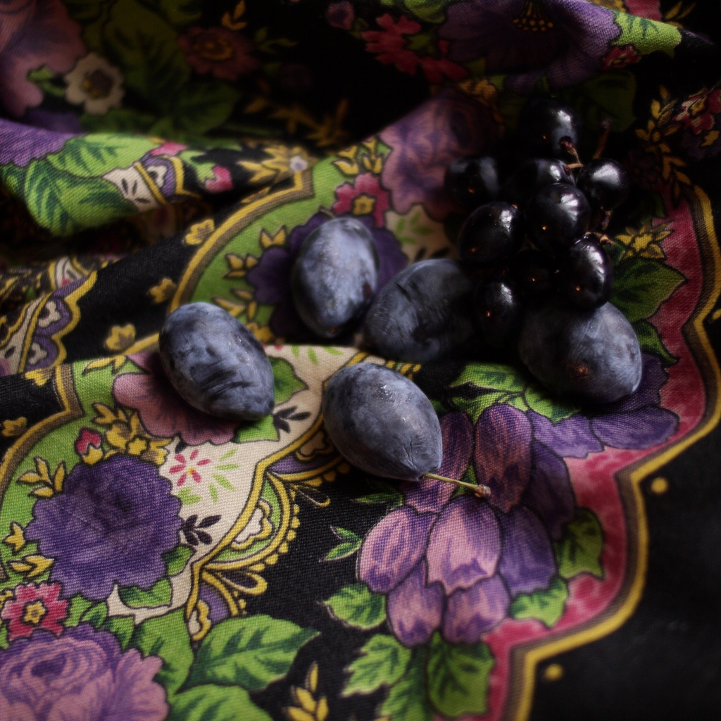 Да, именно этот колорит и заставляет разглядеть детали. Их все как-то сразу видно. Очень красивый платок! Столько в нём непривычных цветков в самых неожиданных местах. Но и за них цепляется глаз - там сям такие маленькие пУпочки)) А какие колокольчики гроздьями! Как кисти брусничных цветков. Только сливовые
