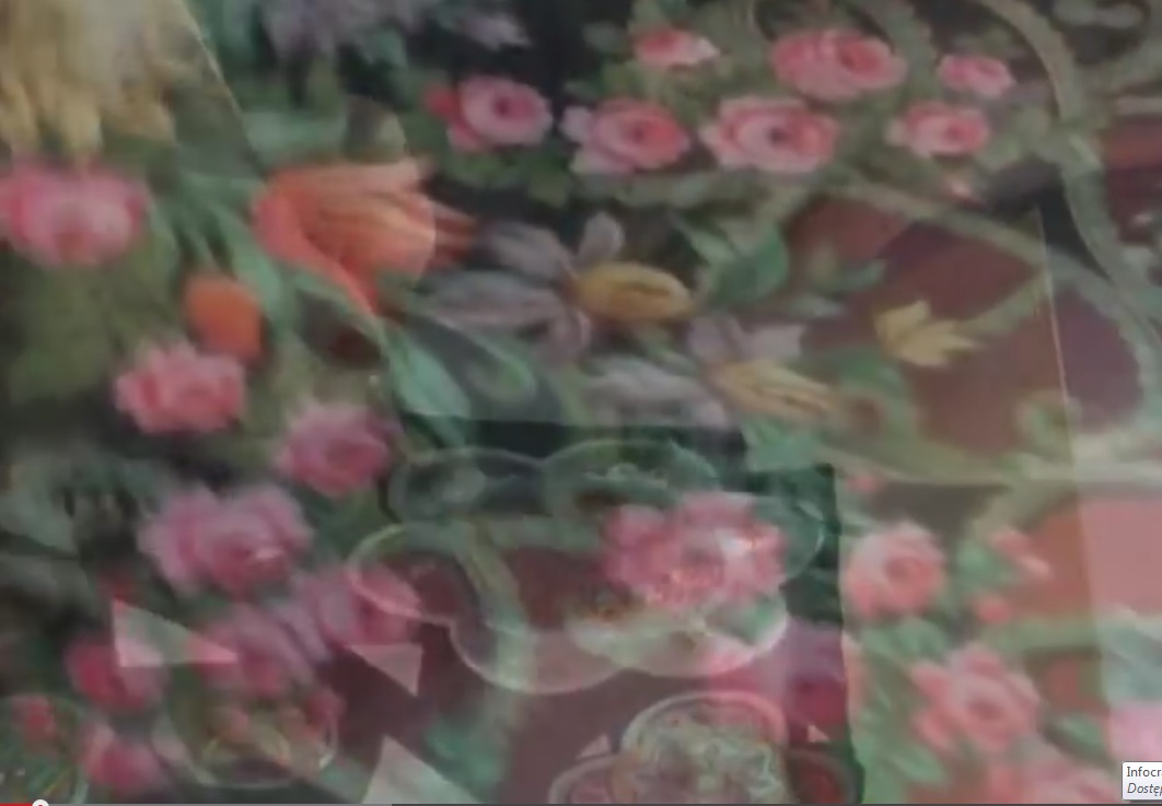 Там она указана как экспонат со следующим описанием: "Регунова Е.П. Шаль "Цыганка Аза".1992 г.. Шерсть, шелк, ручная печать по шаблону, 148х148."