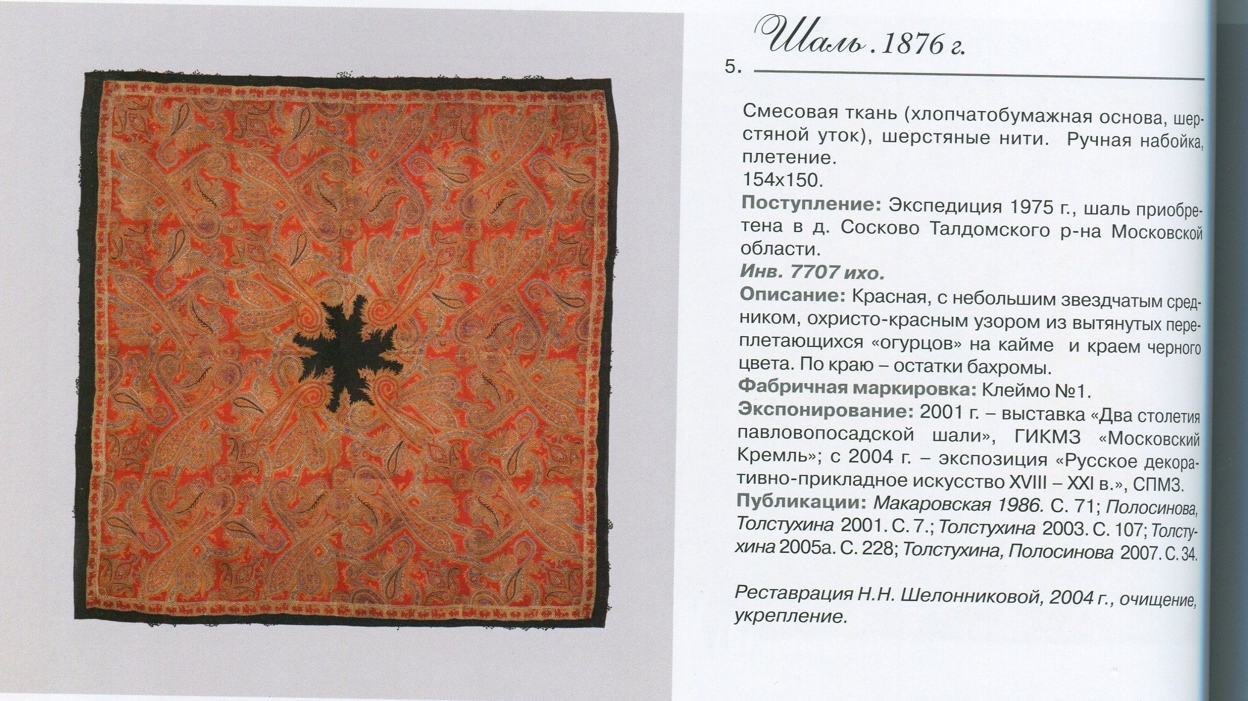 Источник информации: СПИХМЗ. Русские шали XVIII - XX в. (стр.2)
