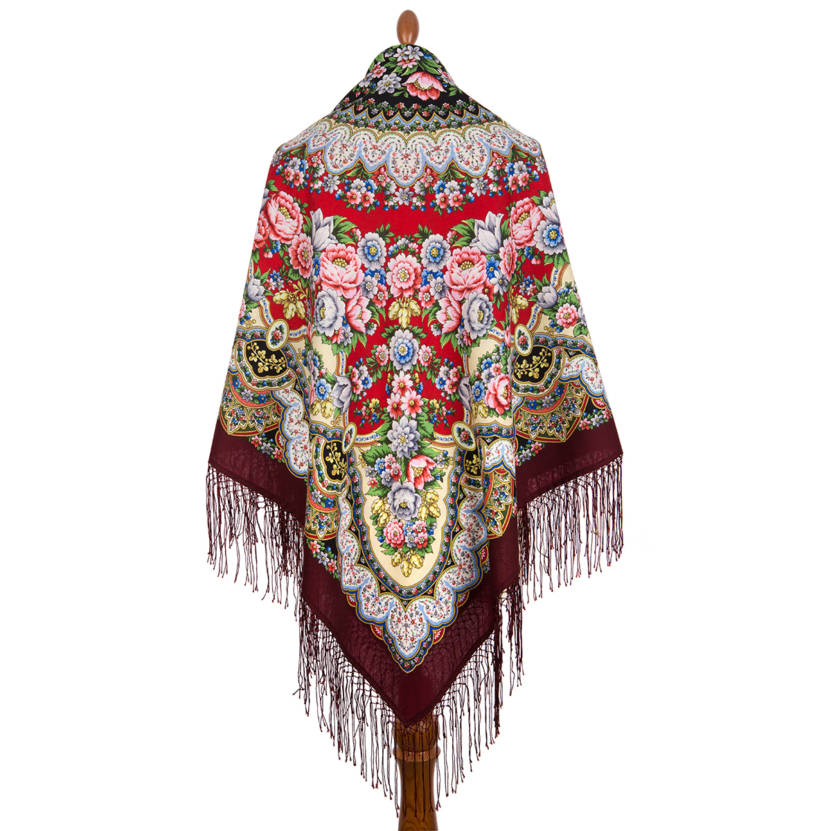 Многоцветная шаль из уплотненной шерстяной ткани с шелковой бахромой, 148х148см