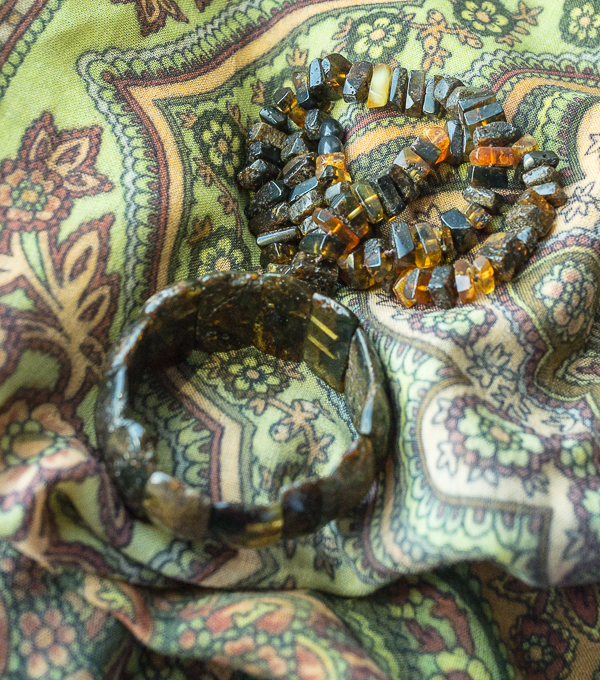 Вот это на самом деле красивое. Но красиво показать не очень получается. Браслет к этим бусам. Можно сказать одни из самых носимых вещей. Фотографировать не получилось, так что буду комментировать. Два звена полупрозрачных у браслета, расположены почти напротив друг друга. На фото постаралась показать . Понятно, что благодаря макросъемке усилены все точечки, выбоинки, он выглядит более однородным. Это современное, годла 2 - 4 назад произведено. Впрочем сейчас такие я еще иногда выижу =на выставке Мир камня в Екатеринбурге. Калининград, пока еще комбинат работал - оттуда. Янтарь какой-то особый, черный, с землей кажется.