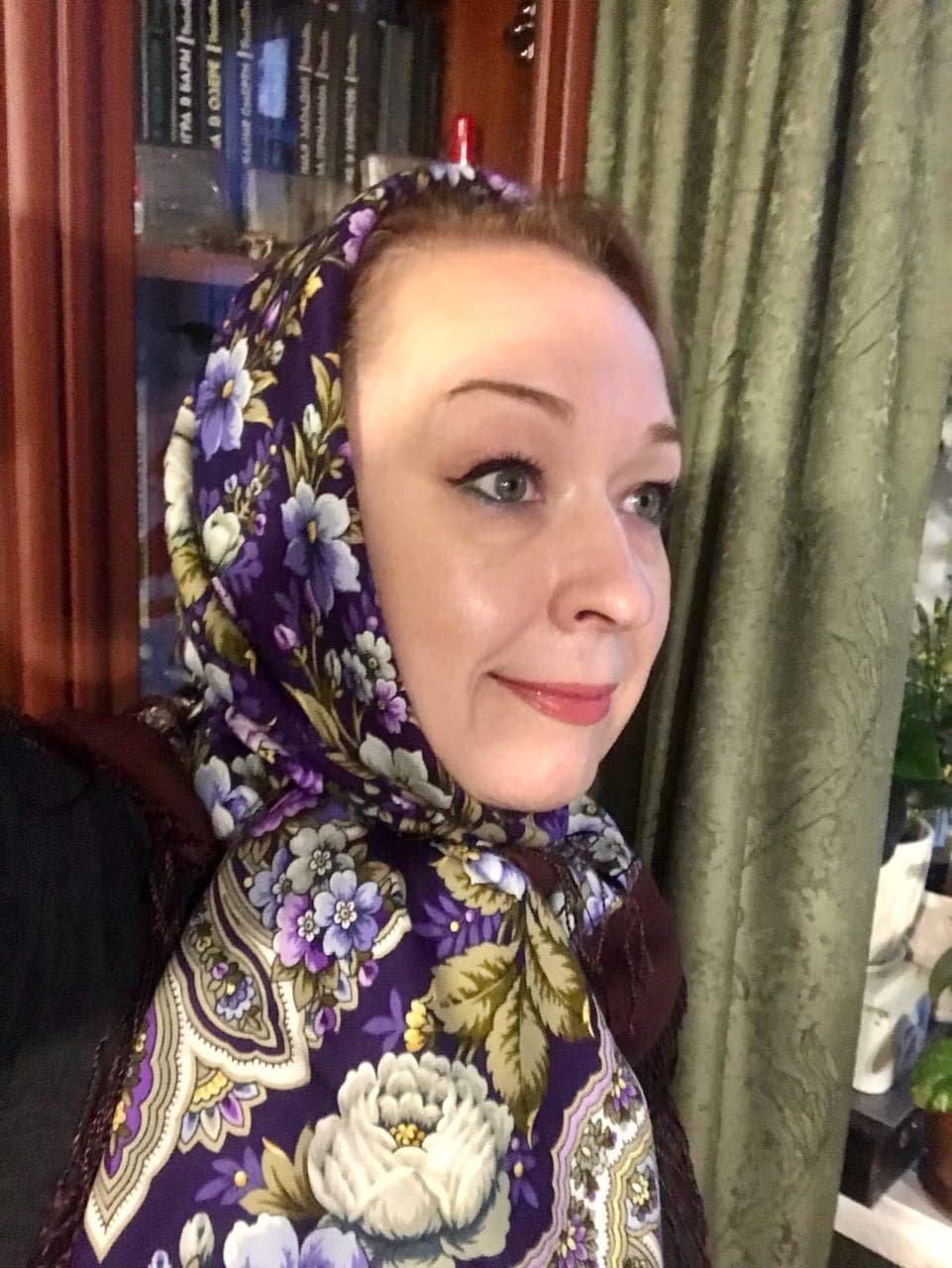 Nadezhda49, да, нужно присмотреться к этой желанной еще раз, спасибо.) Сначала очень понравилась, но при личной встрече было грустненько. Вдруг сейчас повеселело.))) А на Вас сразу гармонично, хоть рядом со шторой правильного цвета, хоть без шторы.)