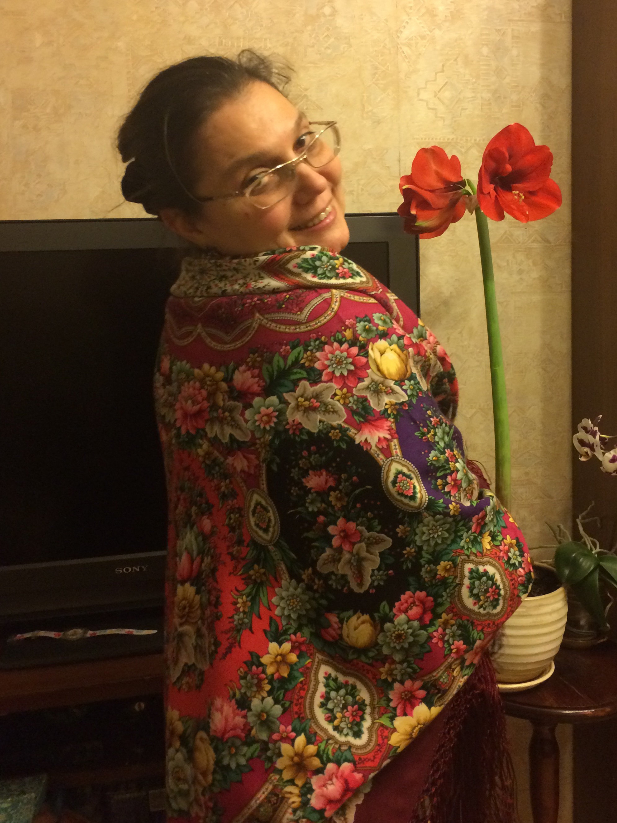 Провизор, новая шаль замечательно Вам идёт. :: При чем оба колорита. Зелёная такая нежная, а красная очень эффектна.(Кликните, чтобы почитать, что спрятано под катом)...