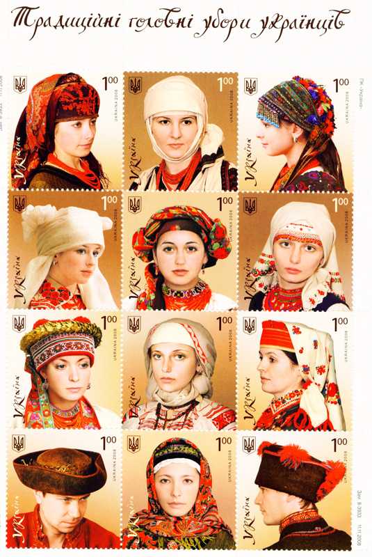 А я сама выкладываю отсканированный блок марок, которые выпустили в прошлом году в Украине "Головные уборы Украины".