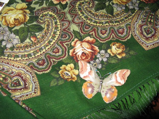 Селена,все брошки красивые,а бабочка вообще загляденье!Словно так всегда и жила на этом платке. А что за платки,кстати?
