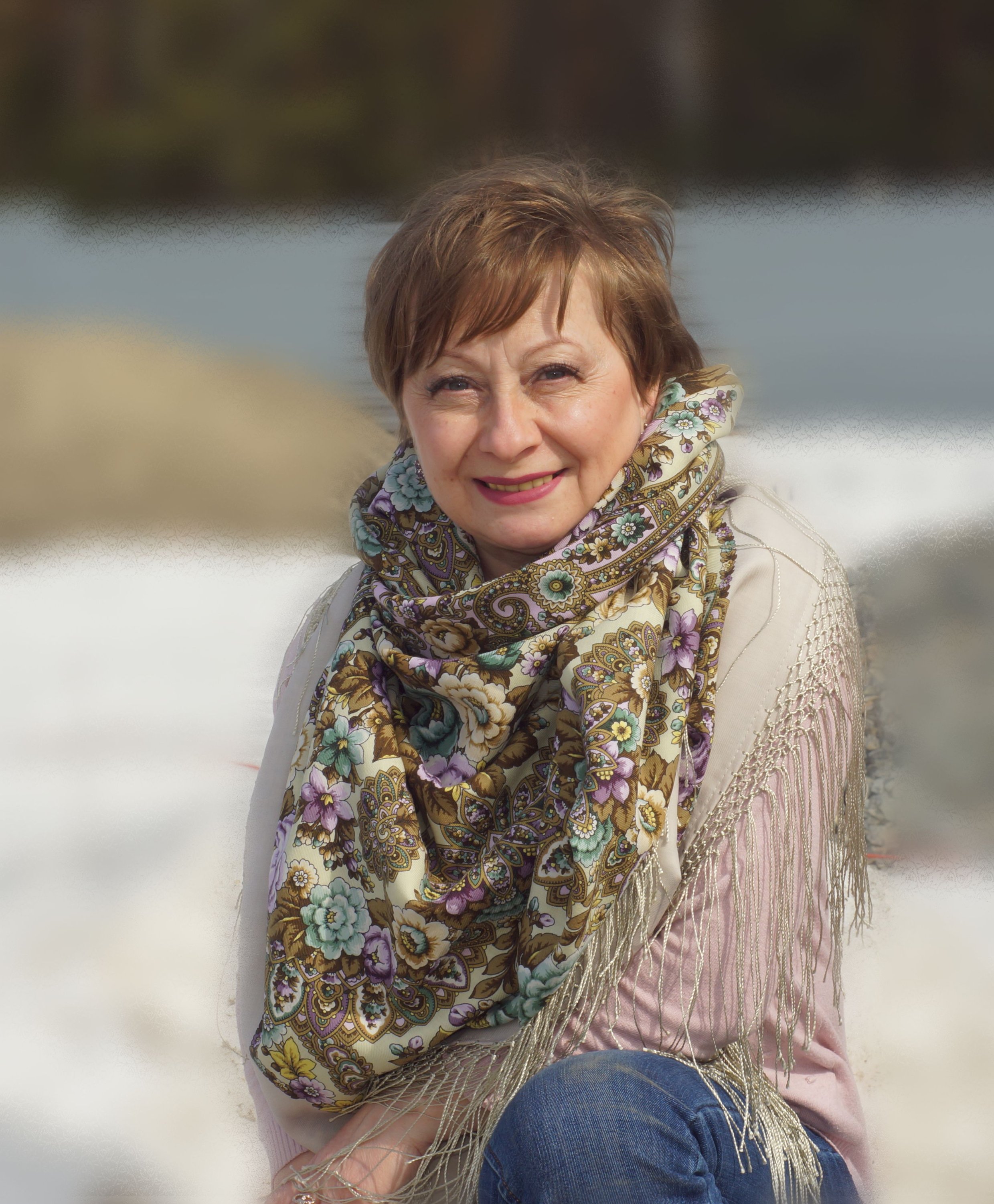 Сегодня ездили на участок, где будем строить дачу, в следствие не очень красивого фона, я его заменила или размыла. Надевала Красавицу, в ней и сфоткалась, нравится шаль. Солнце слепило глаза, так что лучшее фото а с закрытыми. :D