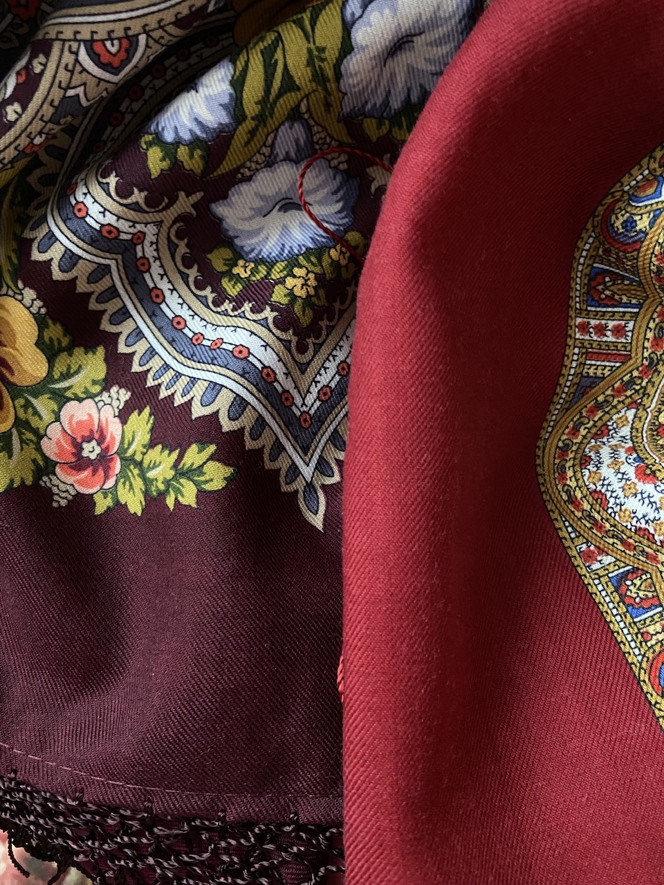 Прежней печати на старой шершавой шерсти с шерстяной бахромой, куплена задолго до, это собственность Аллы, и последний перевыпуск.