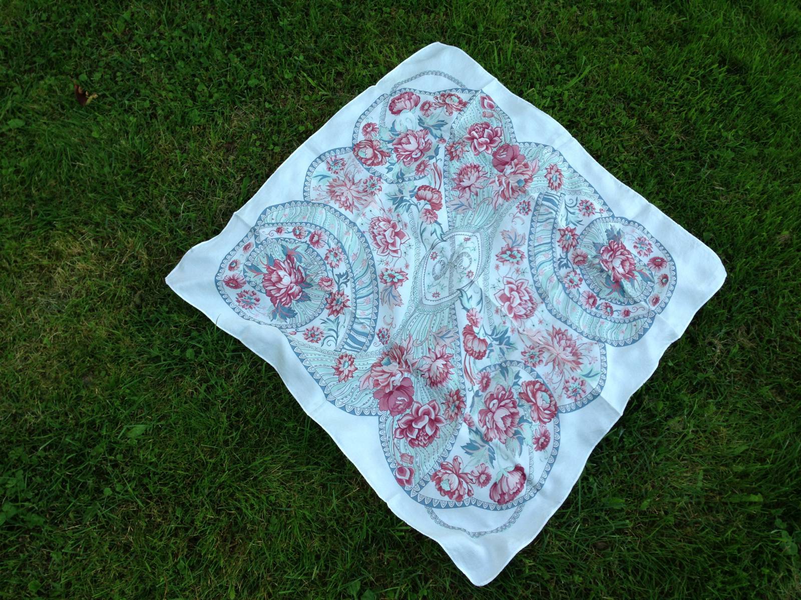 У меня синий Русский танец - когда лежит перед тобой - один, а как накинешь на себя, то узор и цветы на однотонном фоне смотрятся еще более живыми и выразительными.