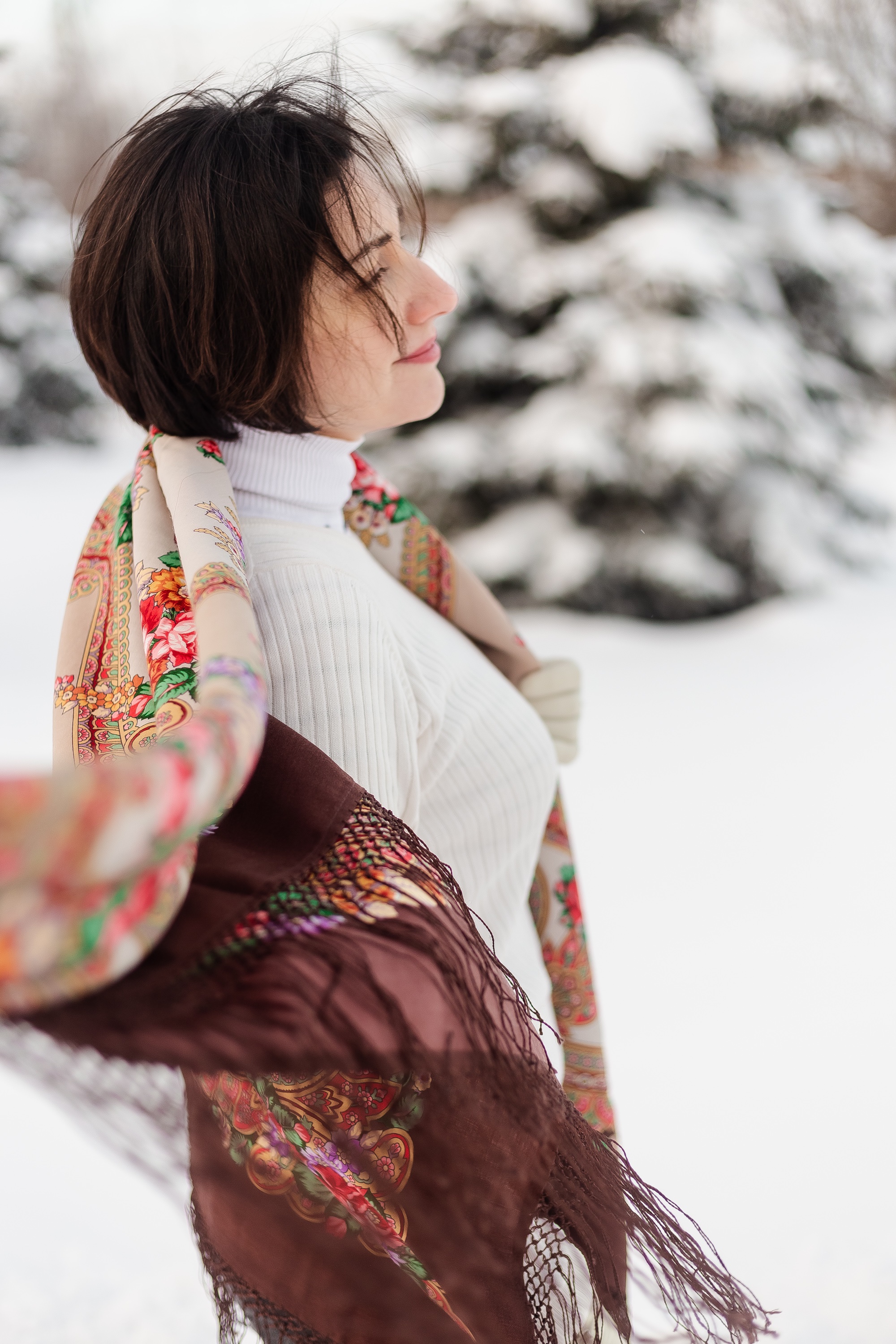 Я так влюбилась в рисунок, что даже неважно было, с чем носить)) Хотелось чернопольный платок и живых роз. Думала сначала о Когда поёт сердце -18, но для меня оказалось too much. 13-й больше подошел.