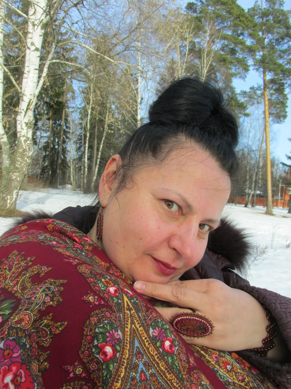 И ещё Волшебница... простите , что много фот, но где-то виднее рисунок шали, где-то виднее потрясающие украшения от Елены Х., а где-то сосны...
