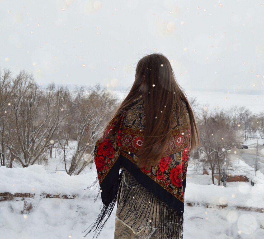 Большое спасибо! Рада, что понравилось. Но, как нам наглядно продемонстрировали наши участницы, эту шаль можно носить не только так. Она и в лесах-снегах хорошо смотрится, и на фоне храмов-куполов.