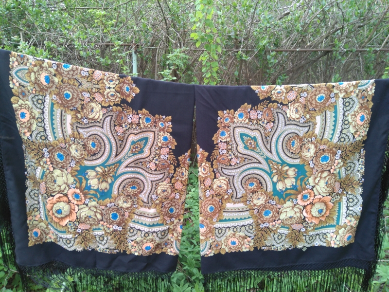 Небольшое отступление: некоторое время назад мы своей местной "бандой" обсуждали синий Лабзинский, ну на предмет идет-не идет, тогда же выяснилось, что имеющиеся варианты печати вполне способны удовлетворить самые разные требования. Тогда мы сравнили две шали, а теперь три.