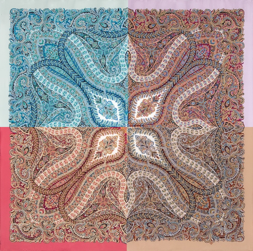"Великолепный век" платок шелковый (крепдешин, бахрома) 130х130 см, художник Жукова Елена