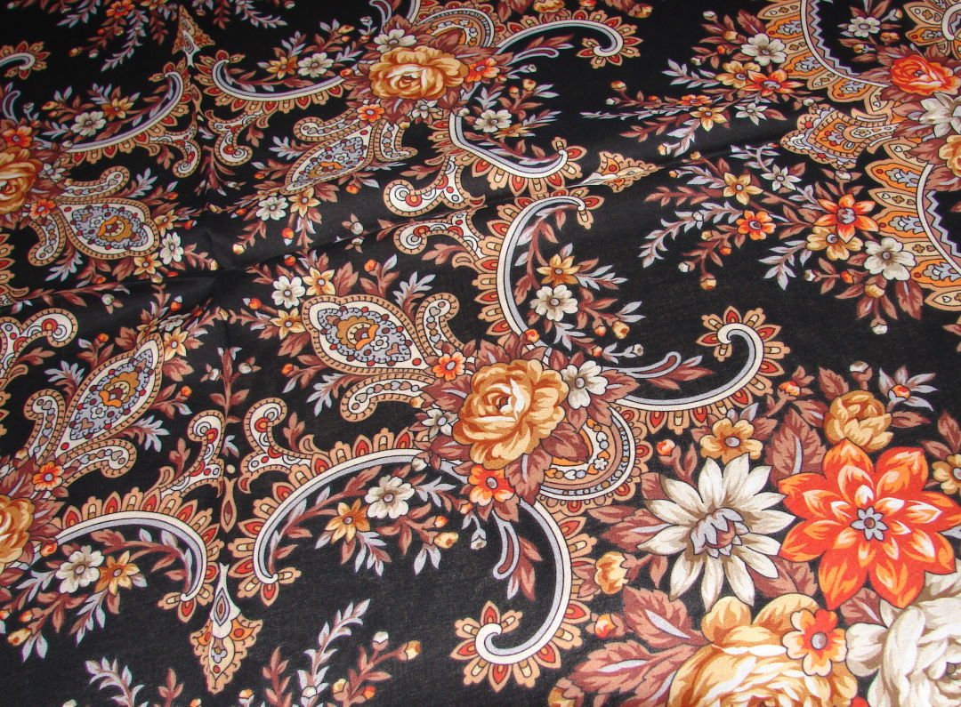 Уже написала выше, что понравилась ткань, показалась плотней, чем у Пионов и Ферганы. Но платок ещё новый, активная эксплуатация и стирка это могут изменить.