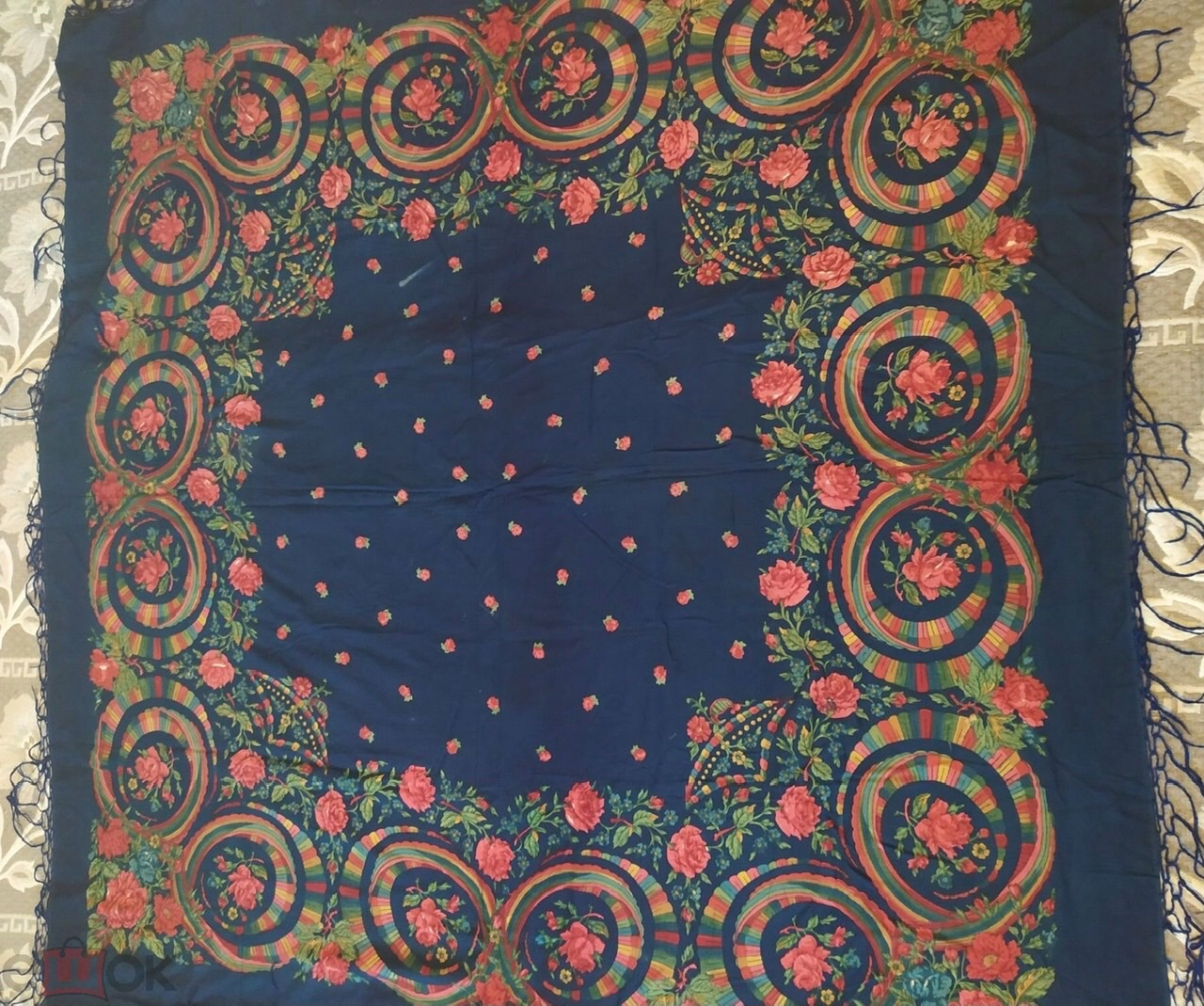 Описание продавца: Старинный платок Примерно 100х100 Кисти Редкий