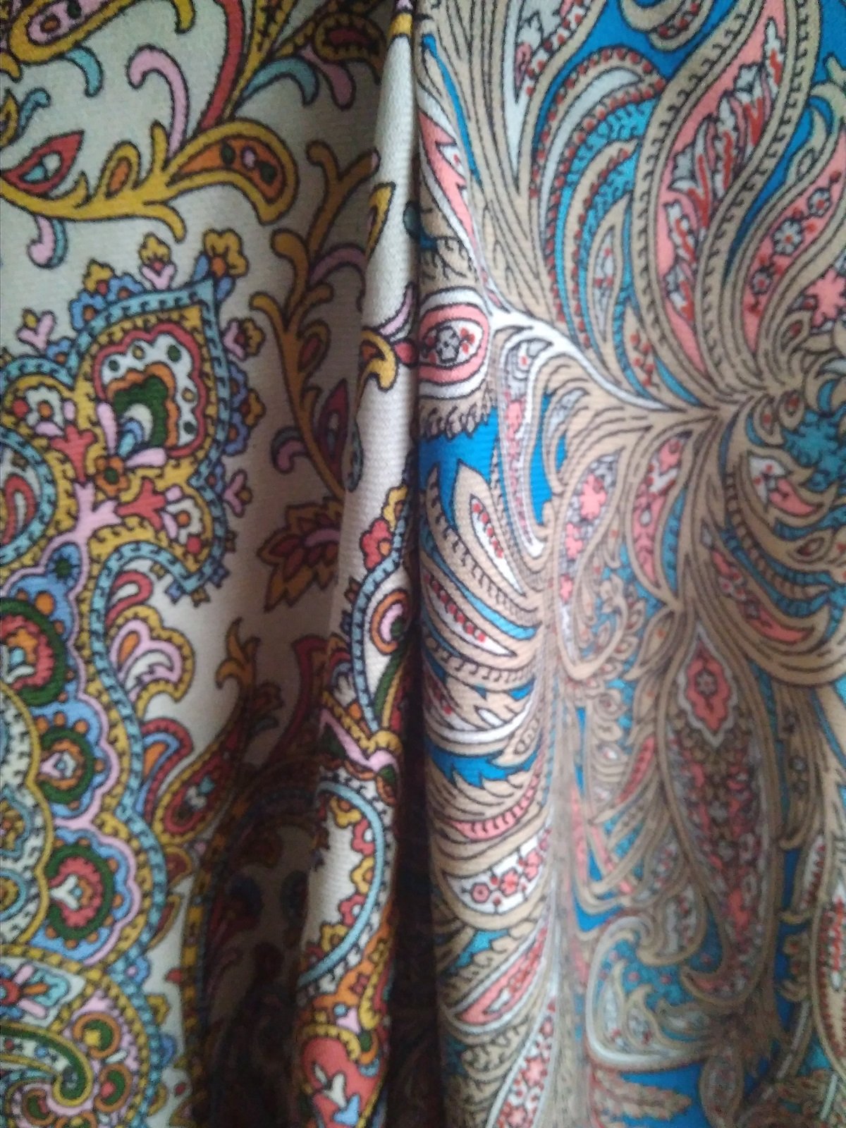 На фото получились как сквозь дымку, в реальности платки более яркие