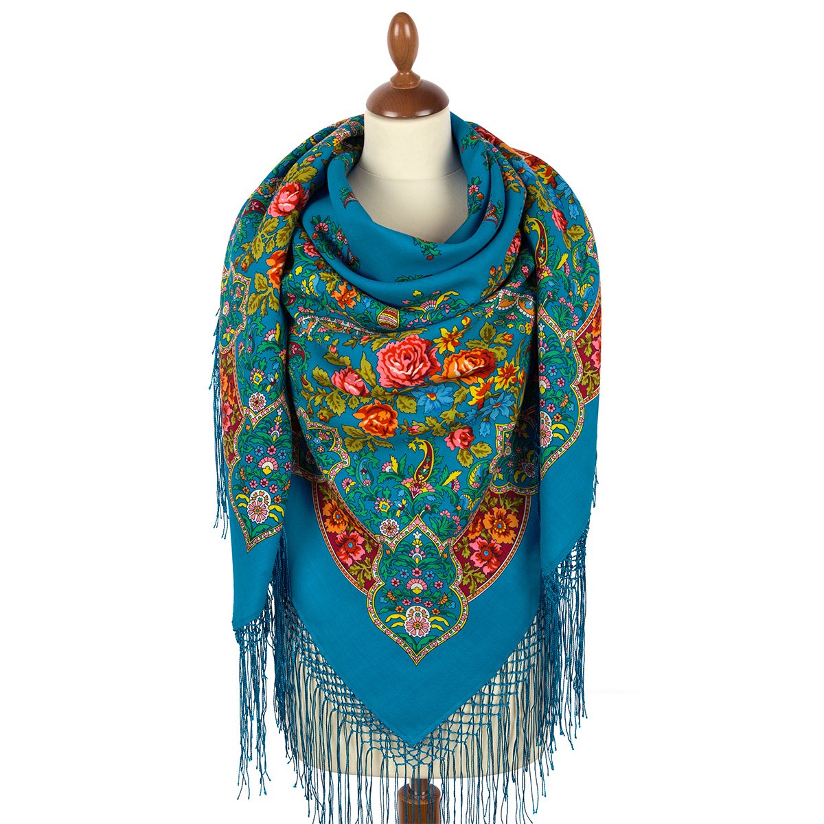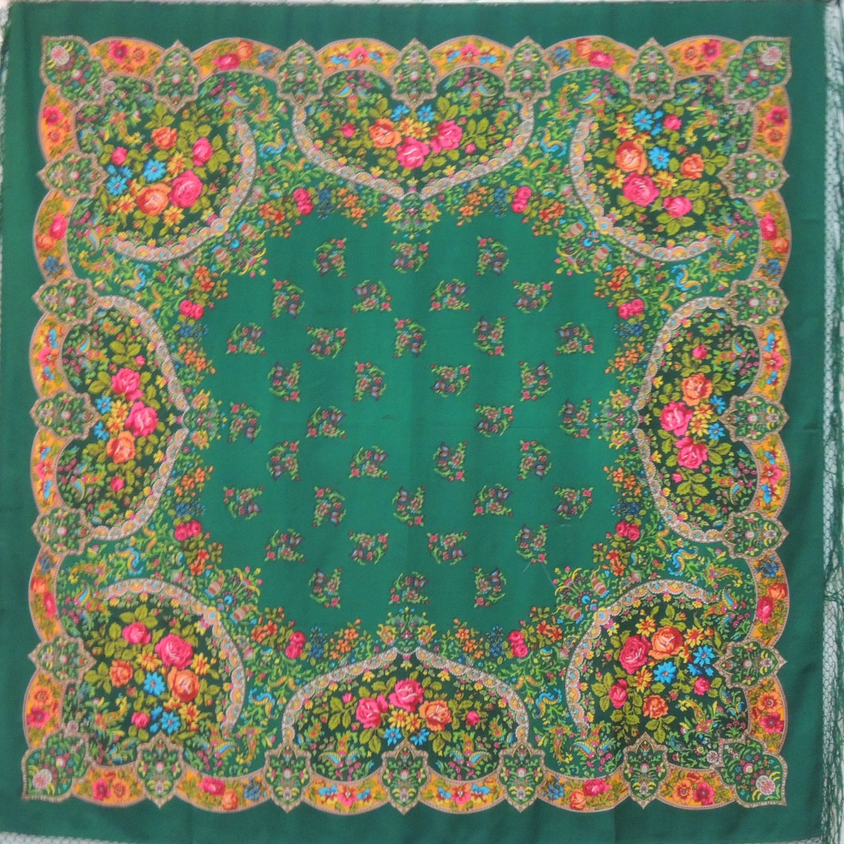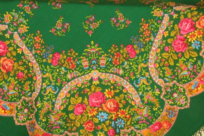 argon писал(а): Шаль 150х150. Шерсть. Информация об этой шали публиковалась во множестве источников, в частности, – в обоих альбомах Толстухиной и Полосиновой, в кн. Баровского, Макаровской, Рудина. Считается, что это – рисунок 1950-х годов, лишь Рудин указывает 1940-й. До 1960-х годов набивалась вручную. Известны (мне и на момент написания) 4 колорита: красный с бордовыми медальонами, оранжевый с желтыми медальонами, бирюзовый и зеленый.