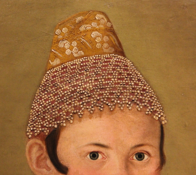 Сейчас в Историческом музее открылась выставка купеческого портрета. Кроме живописи на выставке есть стеклянная витрина с народным костюмом (из коллекции музея). У меня есть фото, но плохого качества, так как освещение в зале специально приглушенное и бликует стекло.